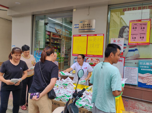 8月17日,广州白云山和记黄埔中药有限公司(简称”白云山和黄中药”) 联合肇庆高济邦健医药(鼎湖区),迅速向受灾地区捐赠首批白云山板蓝根颗粒等物资,并免费发放至市民手中,为灾后防疫注入及时助力。